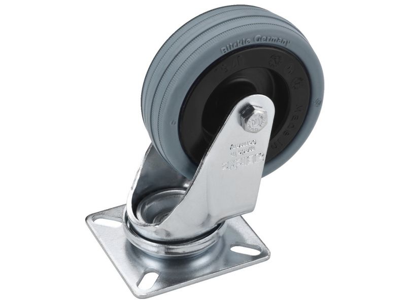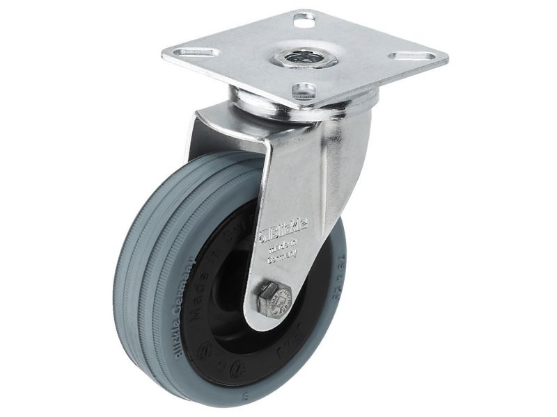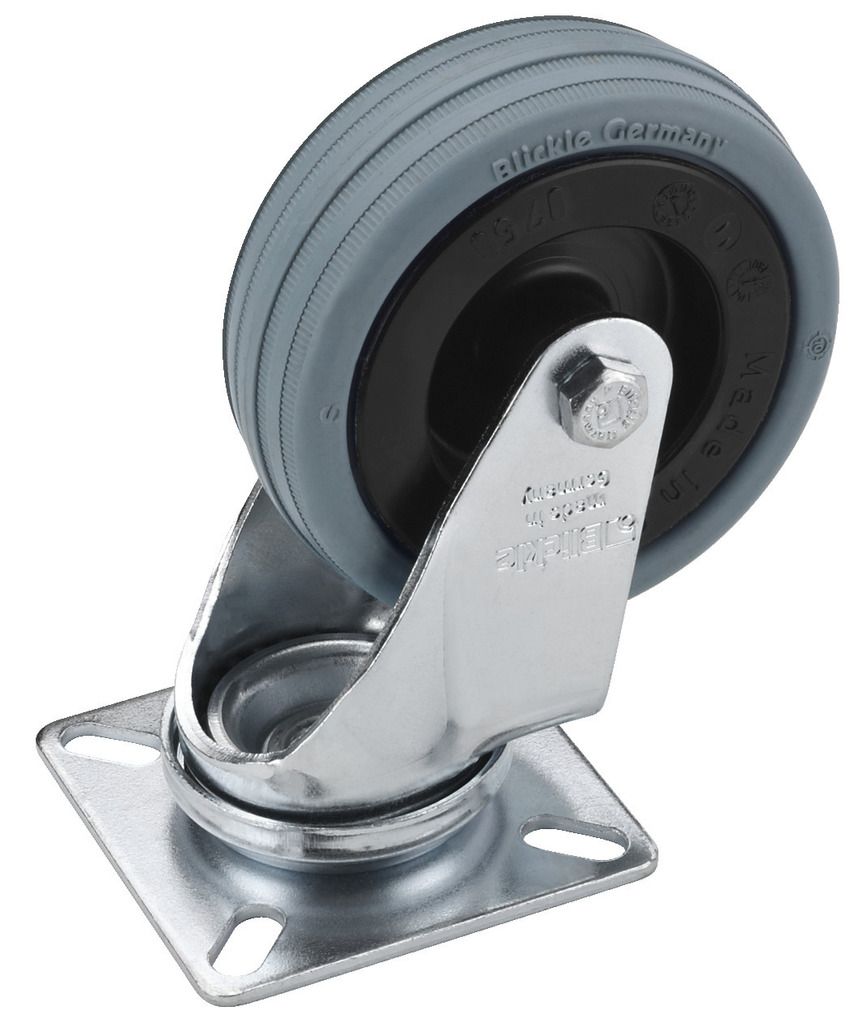 Swivel castor, wheel: Ø 75 mm Zn. Blickle napr. pre transport PA reproduktorového systému alebo skríň Klzné ložiská kolies a riadenie guľôčkovým ložiskom Celogumené kolieska Pozinkované kovové časti