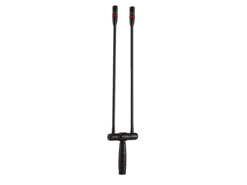 Dvojitý mikrofón na husom krku s LED Backelektret, superkardioidný Vysoká citlivosť 10 dB oslabenie Low cut prepínač LED pre indikovanie prevádzkového stavu Flexibilné polohovanie vďaka vertikálne nastaviteľným husím krkom (160°) Spoločn...