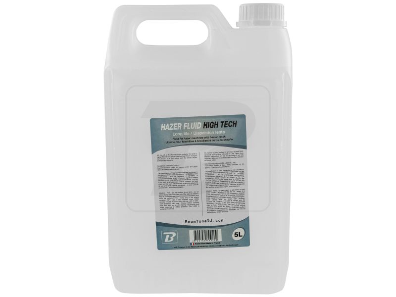 BoomToneDJ Fluid Hazer High Tech 5LFog liquid BidonFormat 5 litersWorks with fog machines radiatorsConcentrated Liquid and particularly effectiveWater#based compositionSlow DispersionFiner particlesClear White creamyGives an atmosphere like London fog or...
