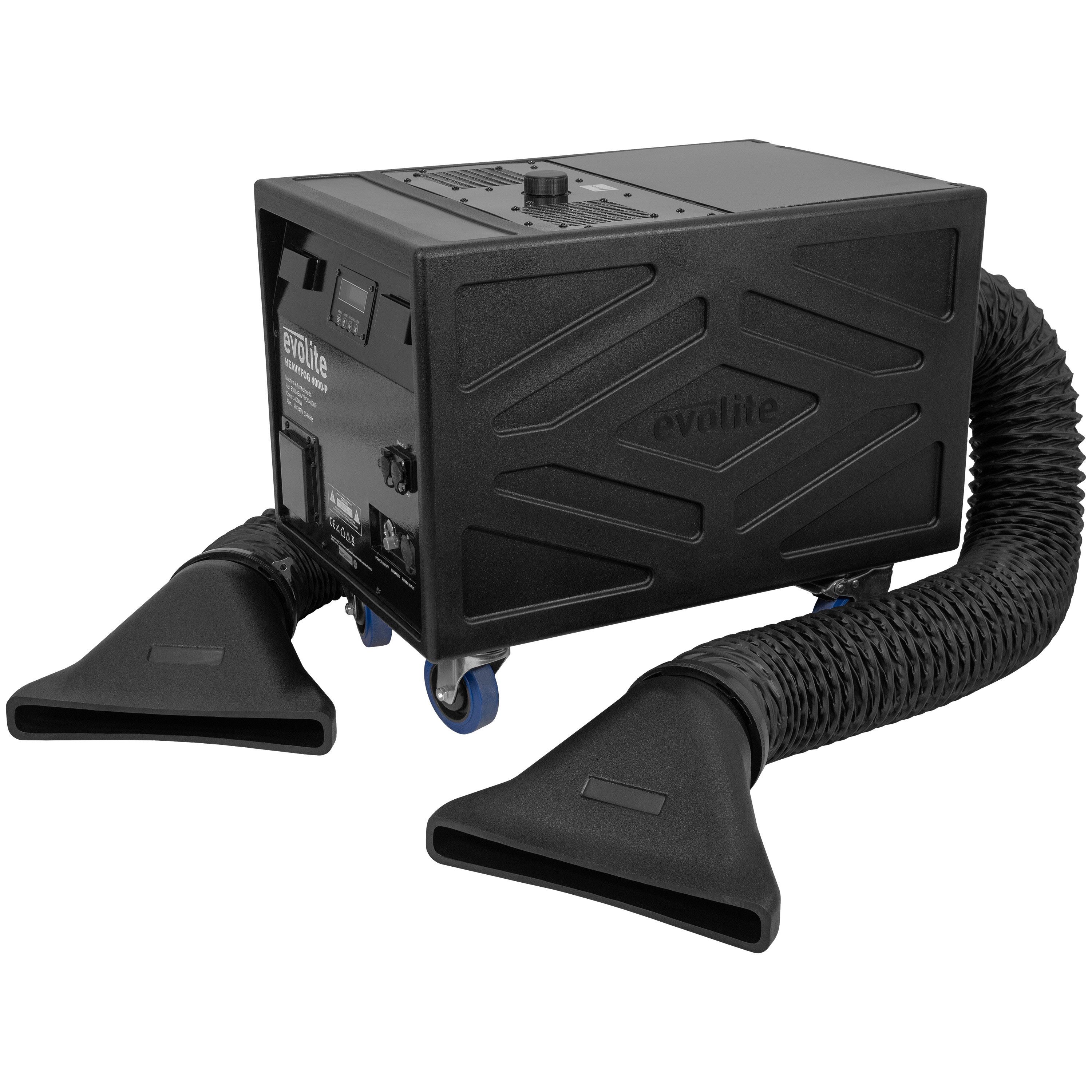 evolite HeavyFog 4000P: Professional heavy fog machine (4000W), LCD screen, DMX control, dense ground smoke for spectacular events.