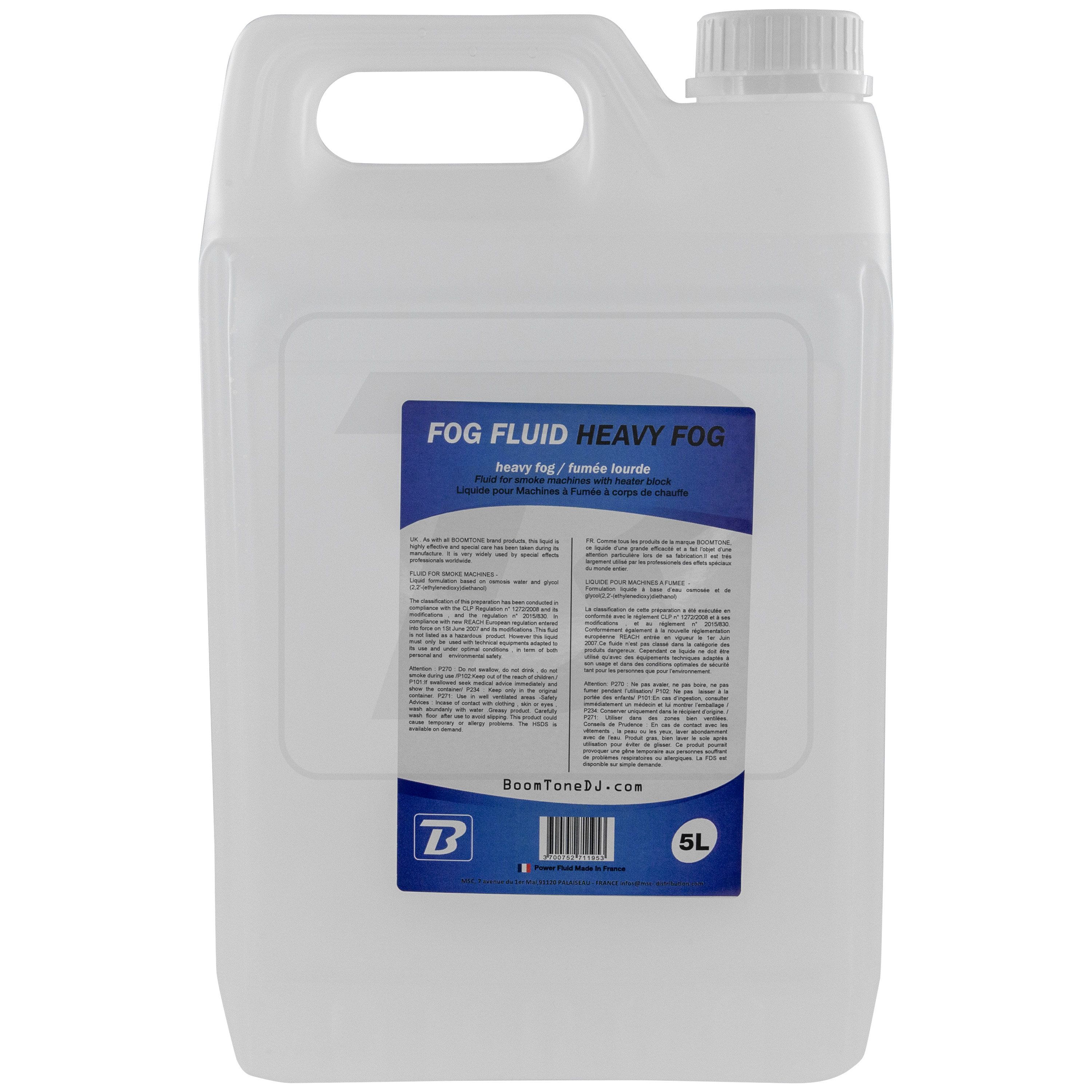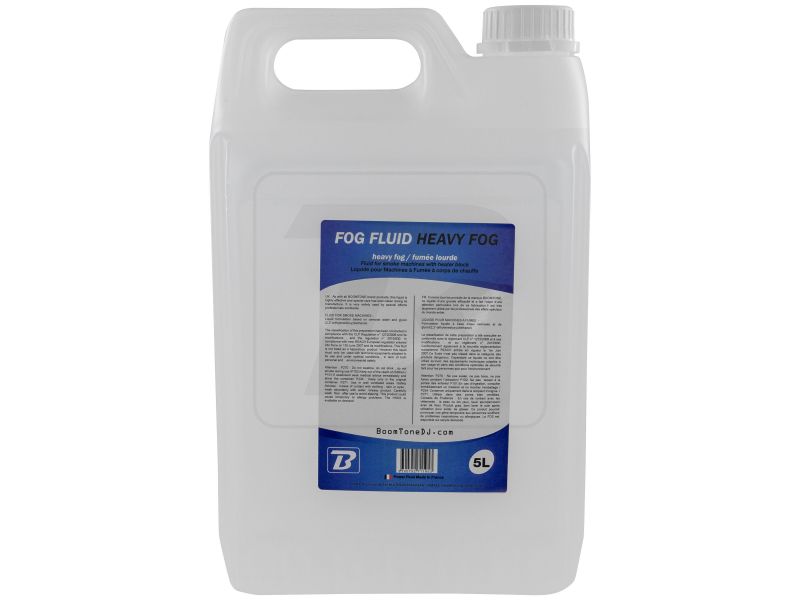 BoomToneDJ Heavy Fog Fluid 5LLiquid can for heavy smoke machineFormat 5 litersHigh chemical purityProduces a very white smokeIdeal for all heavy smoke machinesMeets the NF standards and CERecyclable bottleMade in France