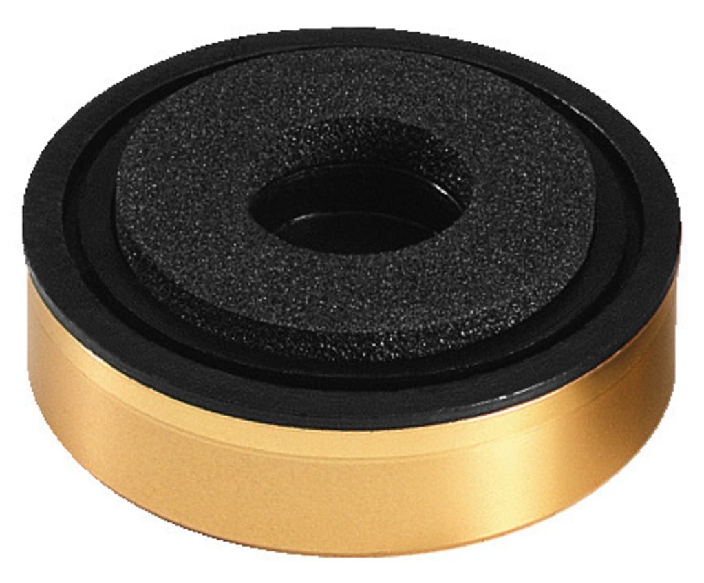 Nožičky pod skrinku Plastové Zlatý dekoratívny poťah Tlmiace vložky S centrálnym montážnym otvorom: Ø 3.5 mm Ø 35 mm x 11 mm