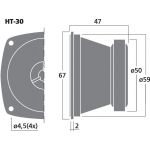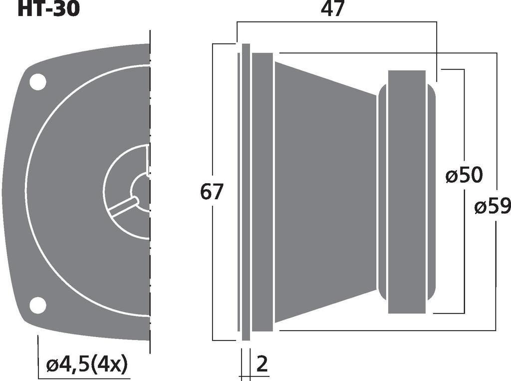 HT-30 je kompaktný a výkonný PA horn výškový reproduktor, ktorý je ideálny pre použitie v malých a stredných PA systémoch. Vďaka svojmu lineárnemu a širokopásmovému frekvenčnému rozsahu a vysokému výkonu vďaka ferrofluidom je HT-30 schopný reprodukovať zvuk s vysokou kvalitou a hlasitosťou.