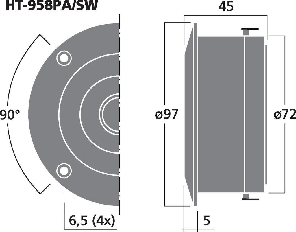 Prstencový výškový reproduktor, 30 W, 8 Ω Pre PA a hi-fi Vysoká účinnosť Široké vyžarovanie s vynikajúcou linearitou