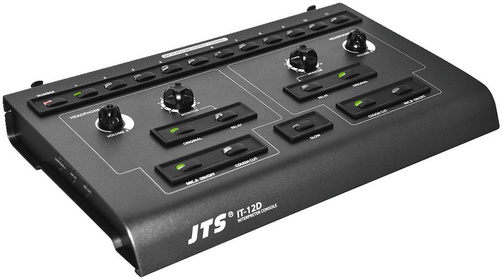 Tlmočnícka konzola, ako doplnok k základni IT-12M Možnosť kaskádového zapojenia až 11 tlmočníckych konzol 2 kanály, jeden aktívny, druhý slúži ako standby kanál Tlmočnícke kanály je možné do konzoly ukladať permanentne Posledne aktívny kanál sa uloží...