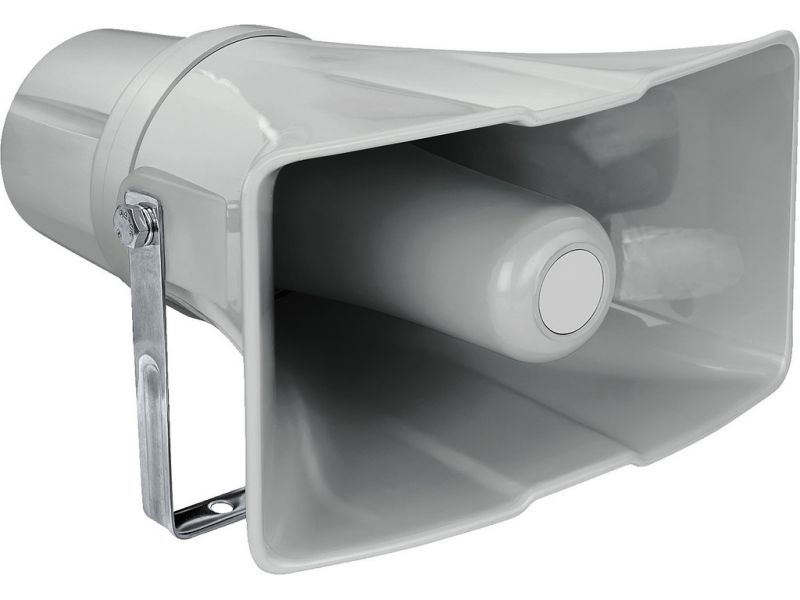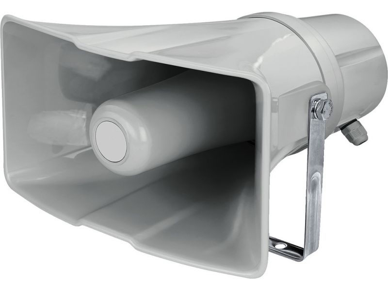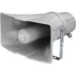 Tlakový reproduktor, odolný voči poveternostným vplyvom 100V technika Odolný voči počasiu, IP66 Chránený voči silným vodným tryskom Vhodný na všeobecné použitie v interiéroch a exteriéroch Pevný plastový kryt Montážna konzola a skrutky z nerezovej ocel...