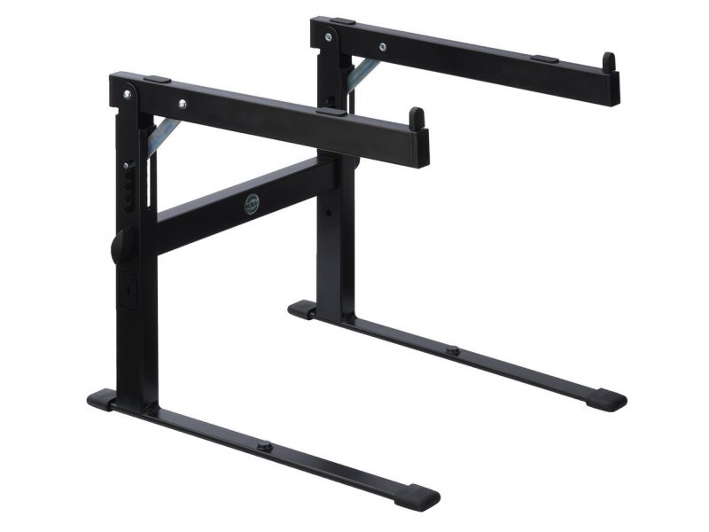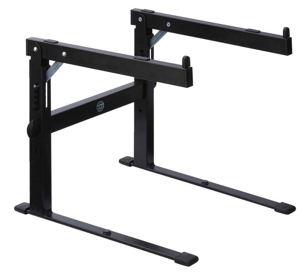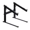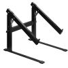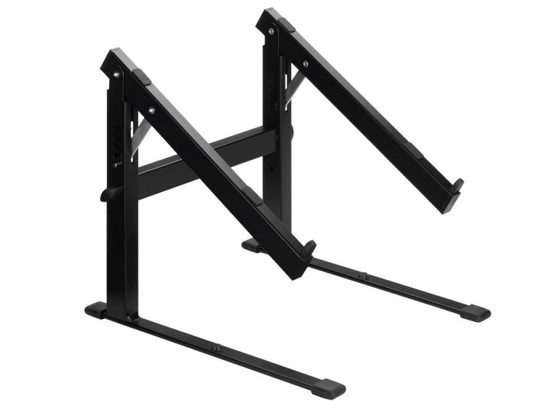 Stolný stojan Pre notebooky, DJ systémy a multimediálne zariadenia Naklápanie s 5 blokovacími pozíciami (0-33°) Pevné kovové prevedenie Rozmery: 300 x 300 x 350 mm Hmotnosť: 2.05 kg