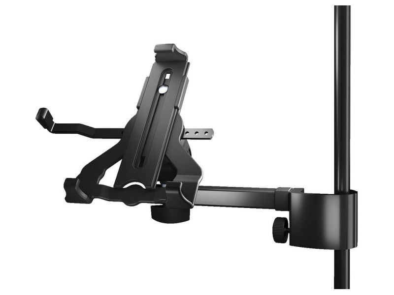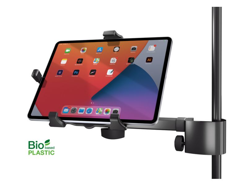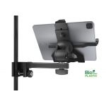 Holder for tablet PCs, with mounting clamp for stands. Universal tablet holder with a practical clamping mechanism for any tablet with an approx. size of 254-406 mm (10"-16"). The tablet holder is made of bio-based plastic. These plastics contain a...