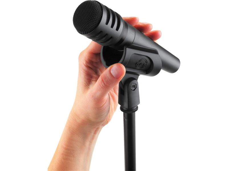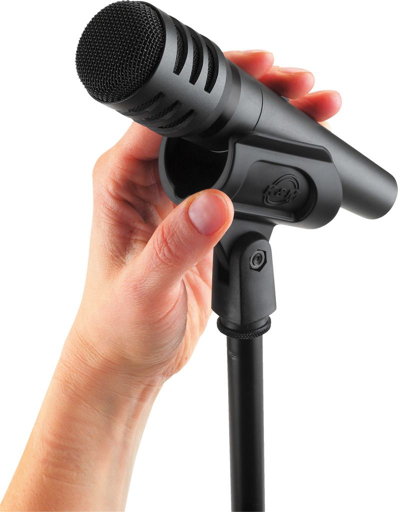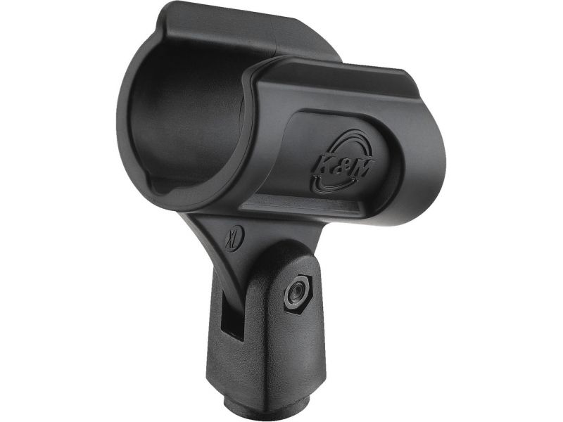 Mikrofónny držiak, Ø 34-40 mm, z elastického plastu. Obzvlášť vhodný pre bezdrôtové ručné mikrofóny s väčšou rukoväťou Závit: 16 mm (⅝") a 9 mm (⅜")