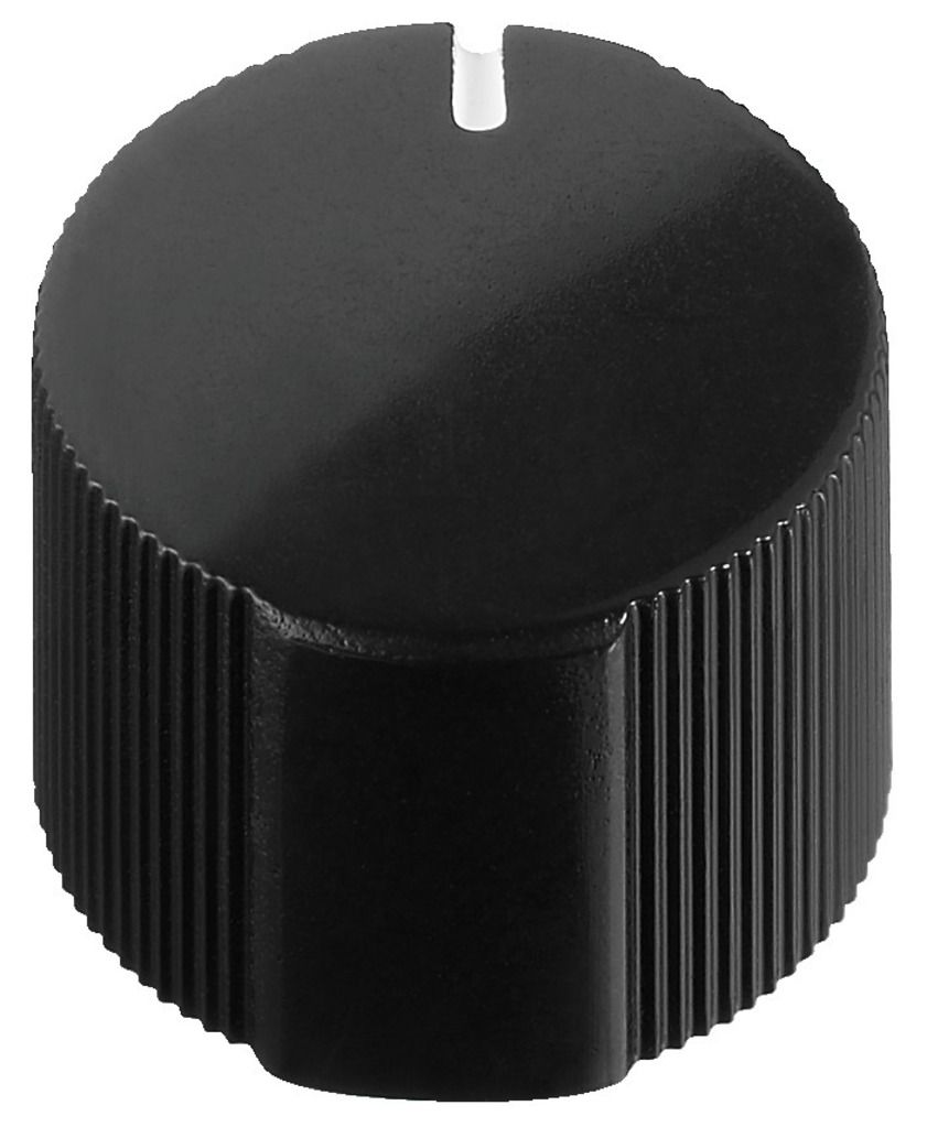 Otočný gombík Pre štrbinové osi: Ø 6 mm Čierna, s jemným rebrovaním, biele značenie Vonkajší Ø: 15 mm