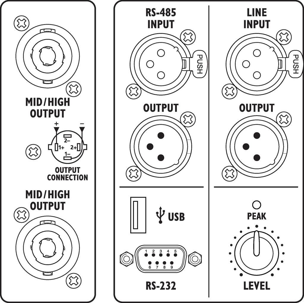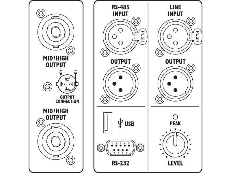 | Vstupy | XLR jack (line), NEUTRIK SPEAKON (speaker) PowerCon (power supply) |