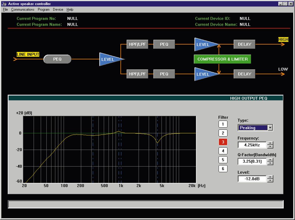 | Ďalšie funkcie | interface for DSP programming:USB, RS-232, RS-485 IN & OUT,supplied with software which is bothextremely easy to use and very efficient |