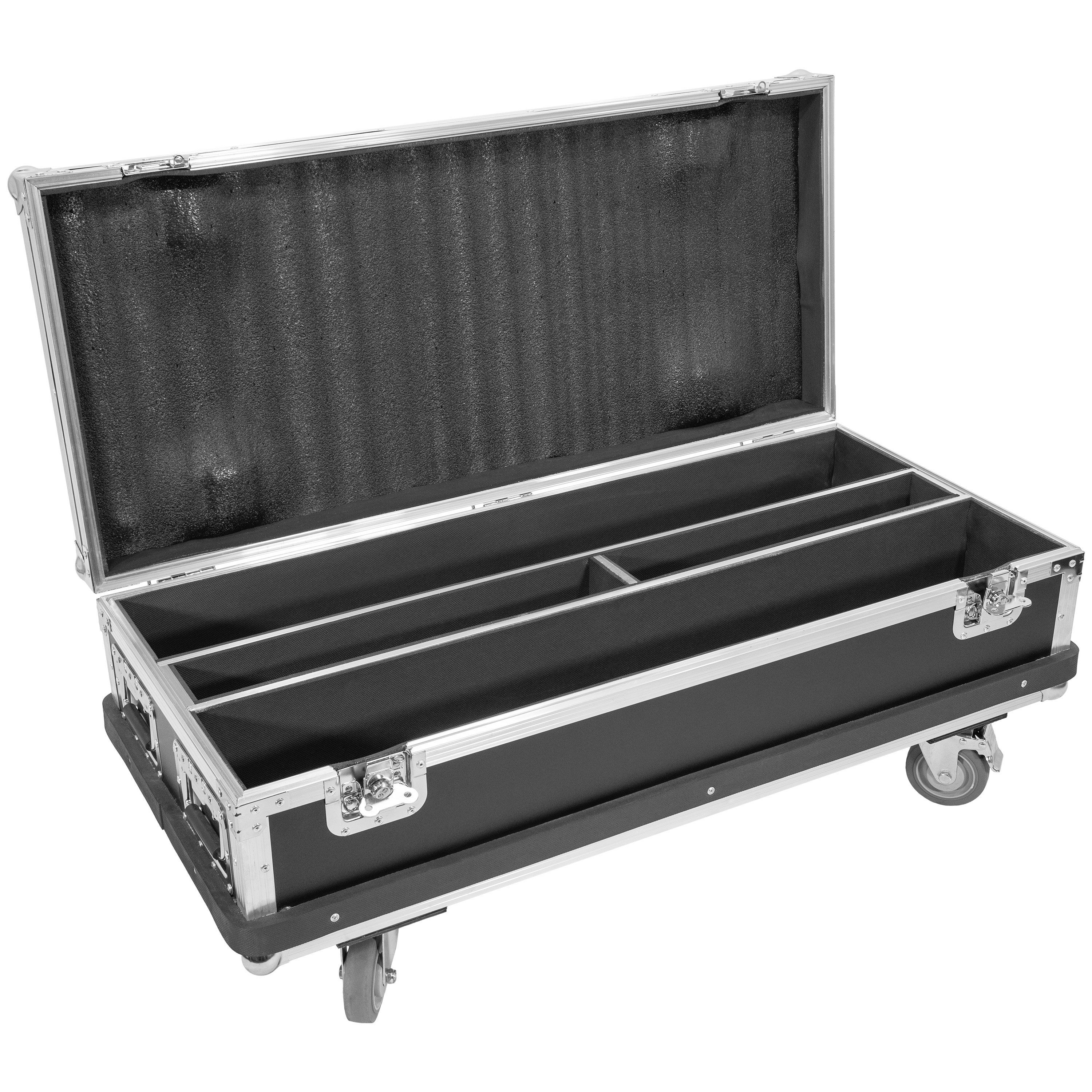 evolite LASER Bar FC - Flight case for 2 LASER bars, with castors and 8X500RED, 6X400RGB, 6X1000RGB compatibility. Solid protection and practical transport.