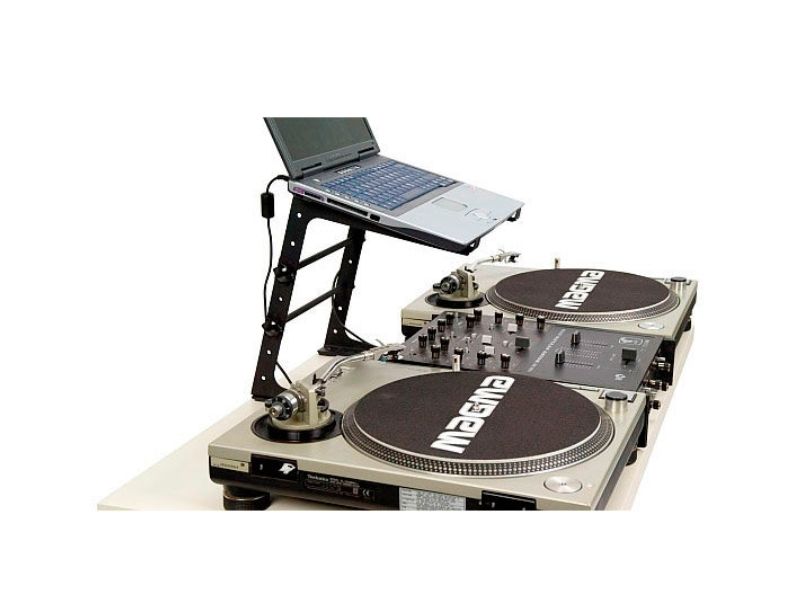 DJ stand for laptop, black color. Installation on horizontal plane, is fixed directly on flight-case, metal frame. BoomToneDJ LDS1 DJ stand for laptop or CD player Very robust metal Frame Metallic stand for DJ and mobile DJs Installation on...