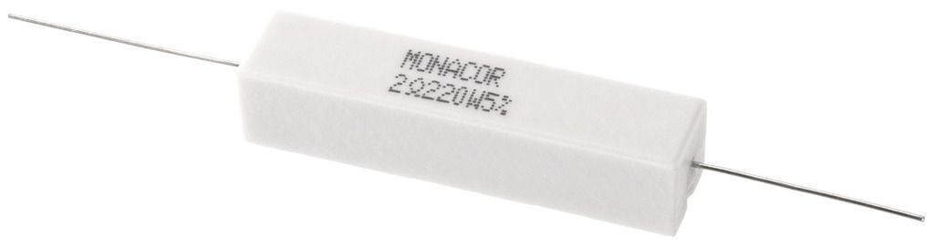 Výkonný cementový odpor, 2.2 Ω, 20 W Odpor pre použitie vo výhybkách, predovšetkým pre PA a špičkové aplikácie, tiež sa pripájajú ako záťažové odpory.
