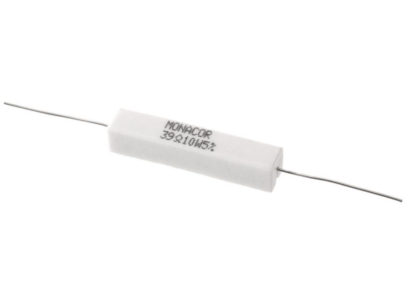 Výkonný cementový odpor, 1.0 Ω, 10 W Odpor pre použitie vo výhybkách, predovšetkým pre PA a špičkové aplikácie, tiež sa pripájajú ako záťažové odpory. Výkonný cementový odpor, 39 Ω, 10 W Odpor pre použitie vo výhybkách, predovšetkým pre PA a špičkové...