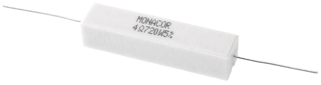 Výkonný cementový odpor, 4.7 Ω, 20 W Odpor pre použitie vo výhybkách, predovšetkým pre PA a špičkové aplikácie, tiež sa pripájajú ako záťažové odpory.