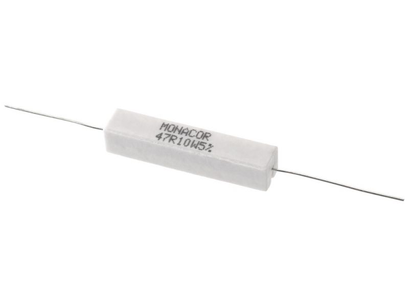 Výkonný cementový odpor, 1.0 Ω, 10 W Odpor pre použitie vo výhybkách, predovšetkým pre PA a špičkové aplikácie, tiež sa pripájajú ako záťažové odpory. Výkonný cementový odpor, 47 Ω, 10 W Odpor pre použitie vo výhybkách, predovšetkým pre PA a špičkové...