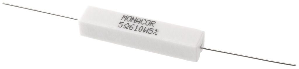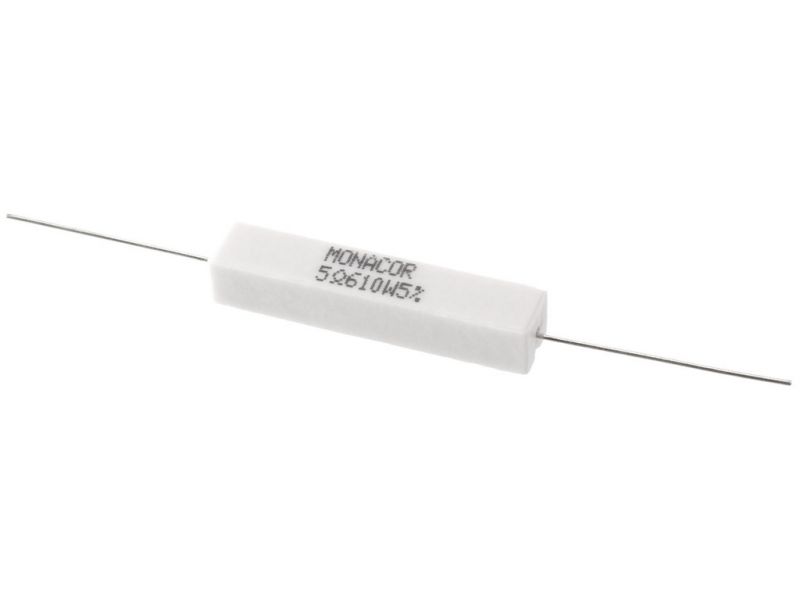 Výkonný cementový odpor, 5.6 Ω, 10 W Odpor pre použitie vo výhybkách, predovšetkým pre PA a špičkové aplikácie, tiež sa pripájajú ako záťažové odpory.