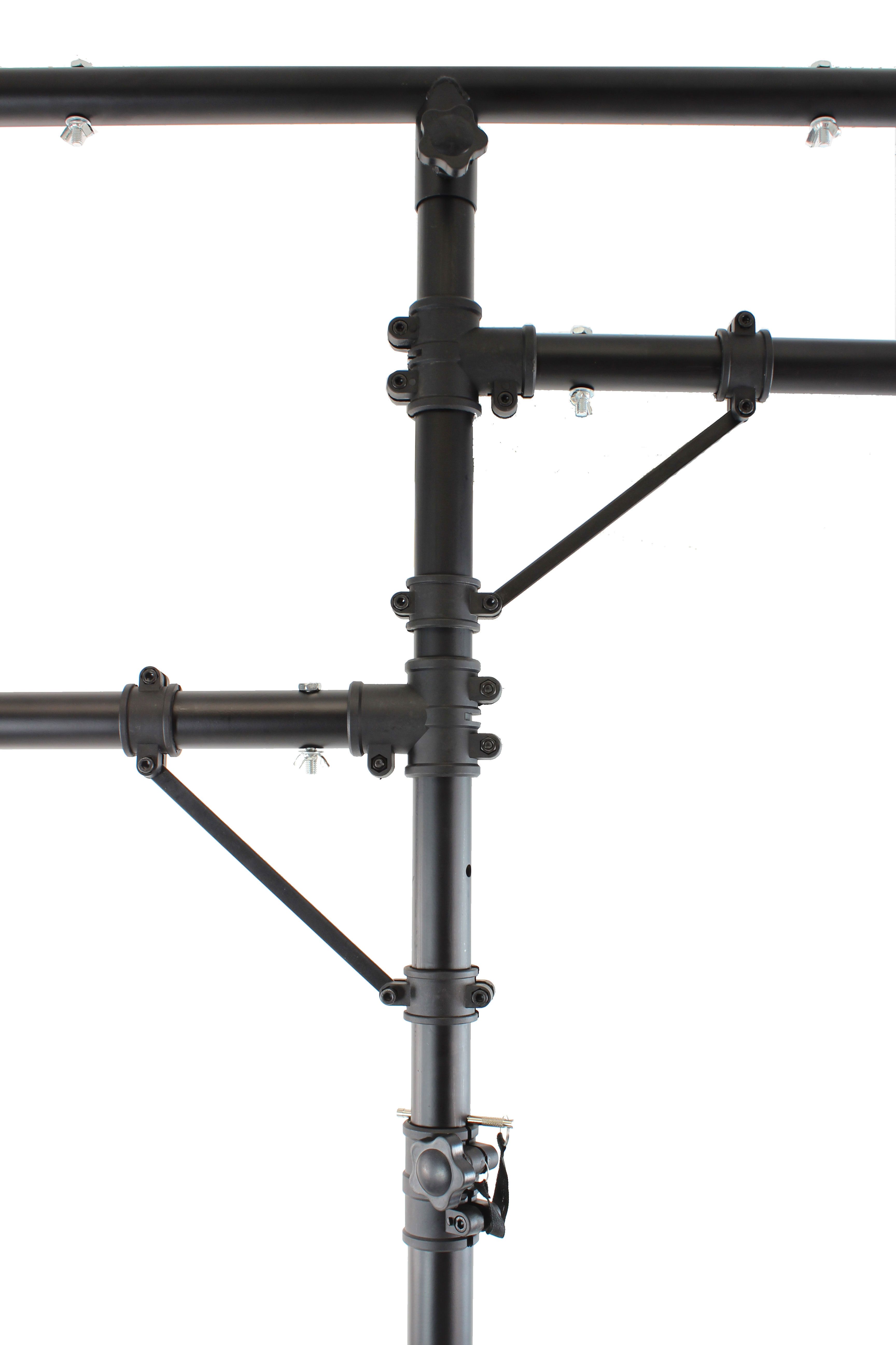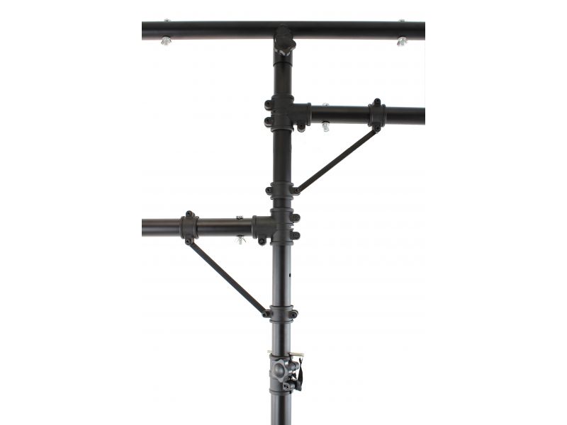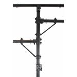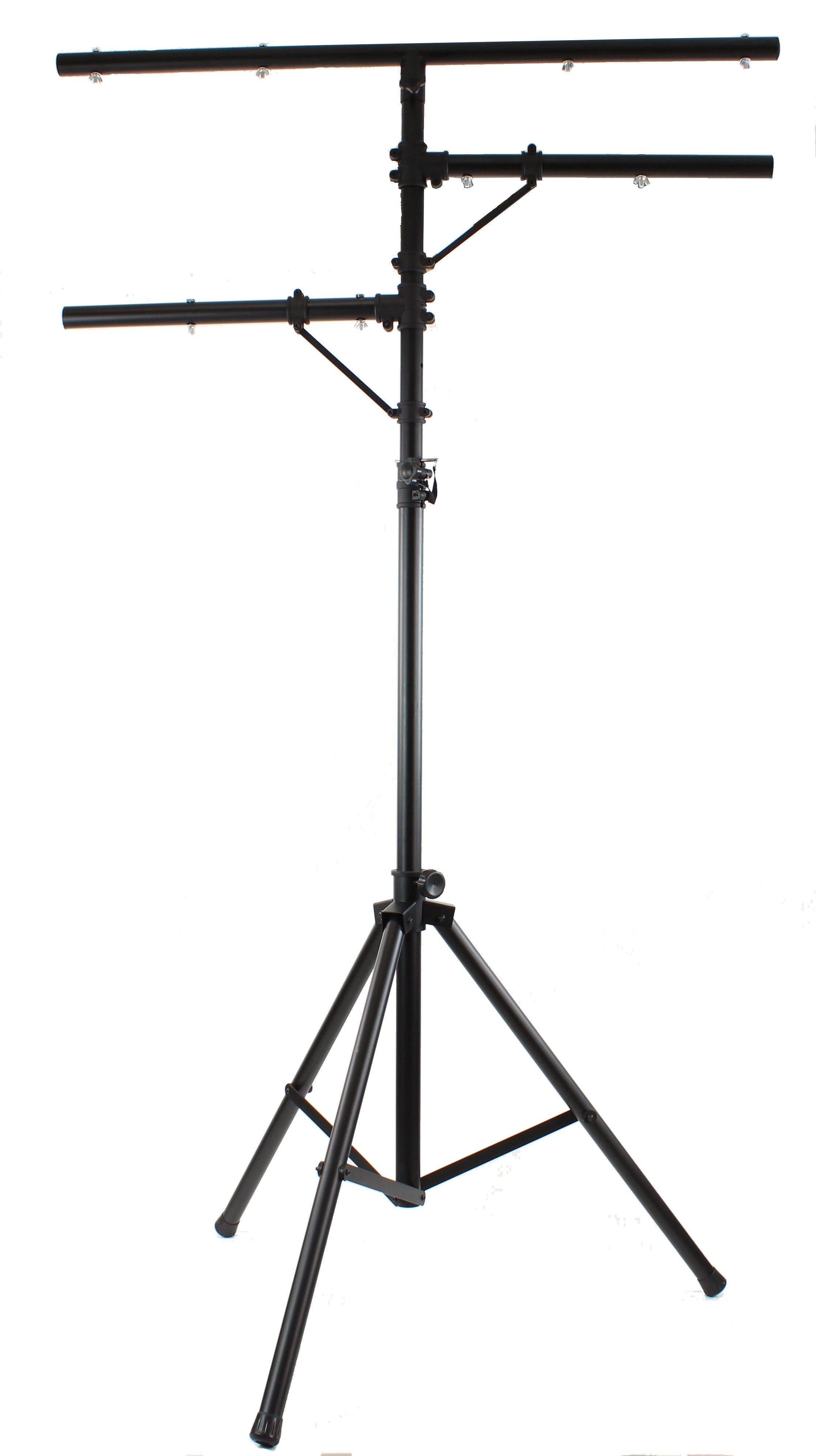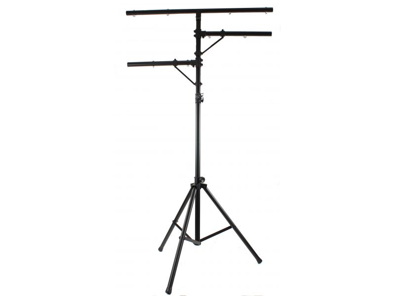 BoomToneDJ LT2 Metal Light stand Stand with mounting bar for 1#16 Projectors T#Bar Charge 35 kg Diameter of Tube 38mm Black paint finish, 8 screws for rigging points Safety Pin Tripod Main bar length 120cm, 58cm for 2 small Maxim...