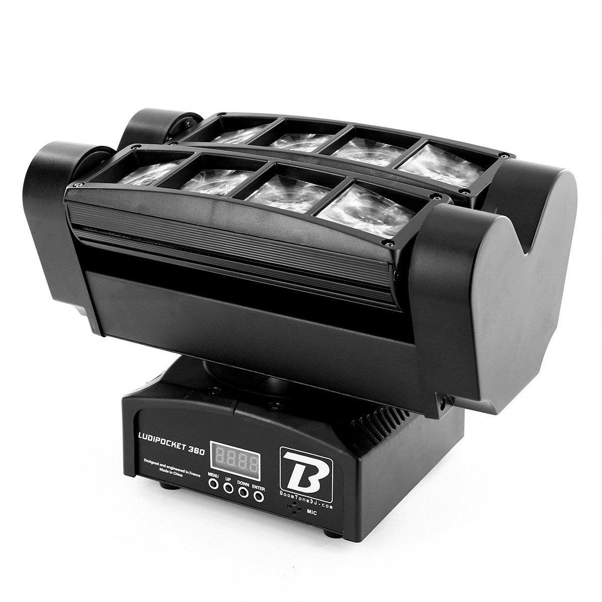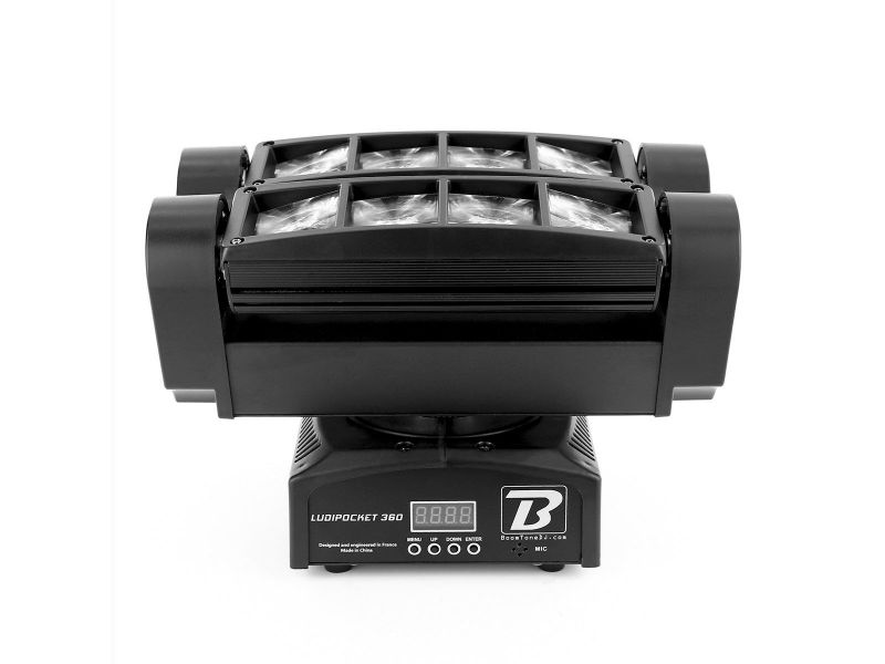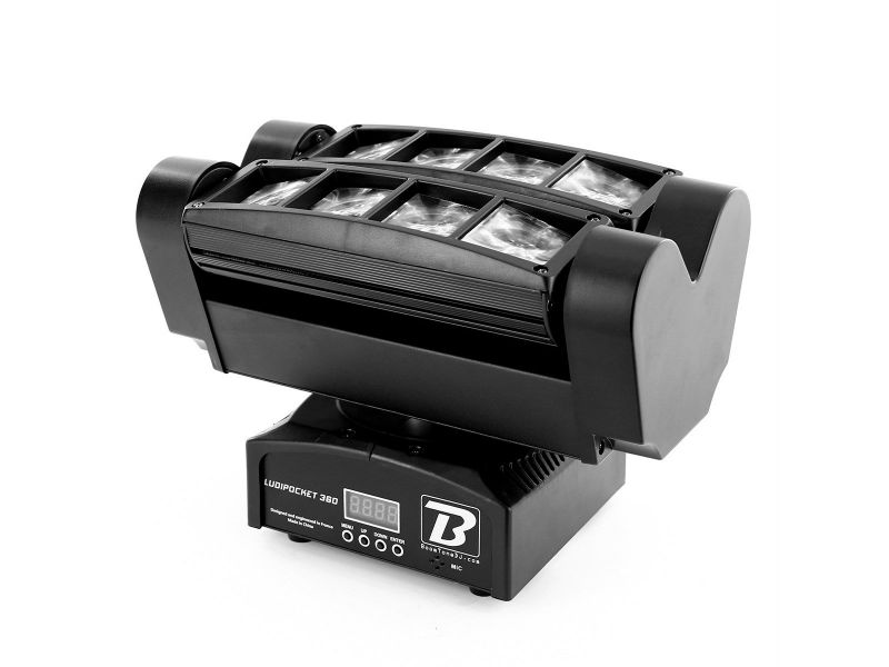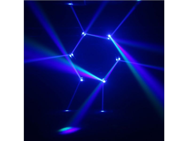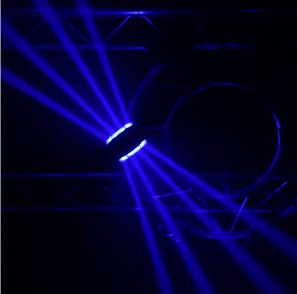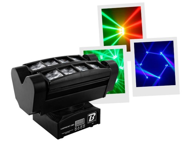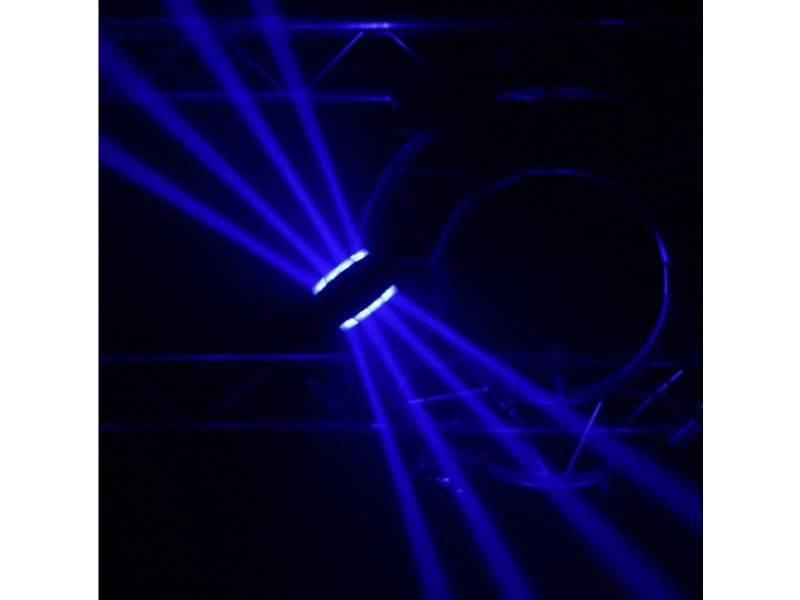 Set of lights multi#coloured with beam effect. 4 segments digital screen. ''Long Life'' LED 50.000 hours RGBW 4 in 1 colours (All LED emit red, green, blue, white) Control of each roll individually 360° rotation of the whole (PAN) Electron...