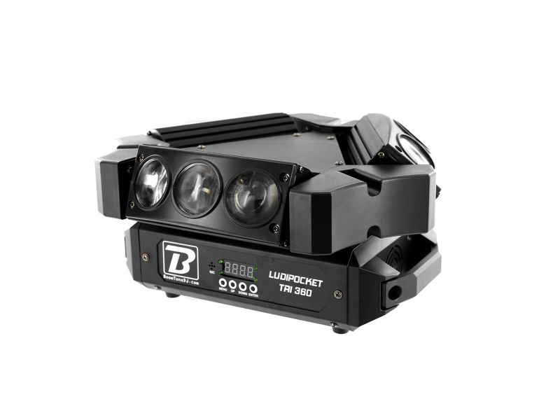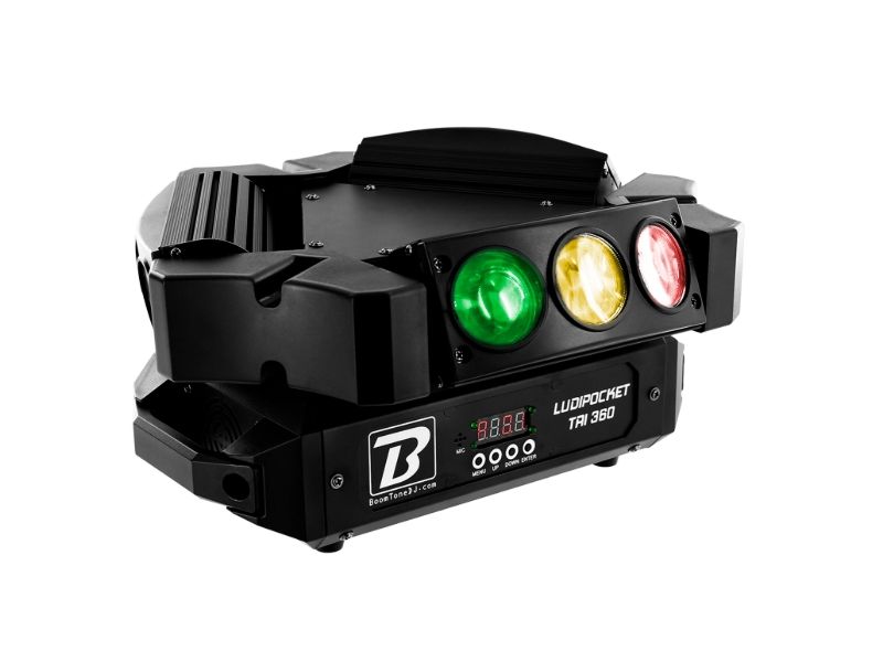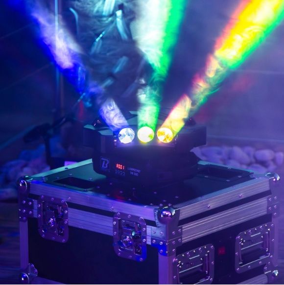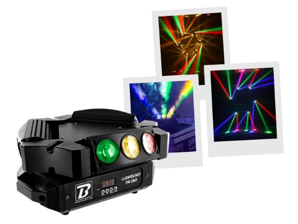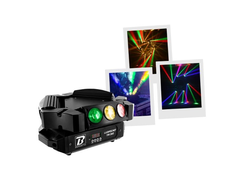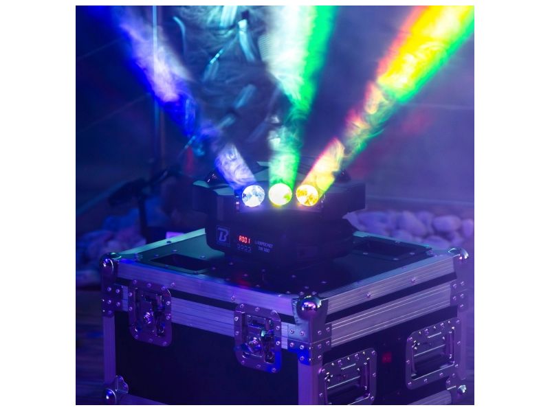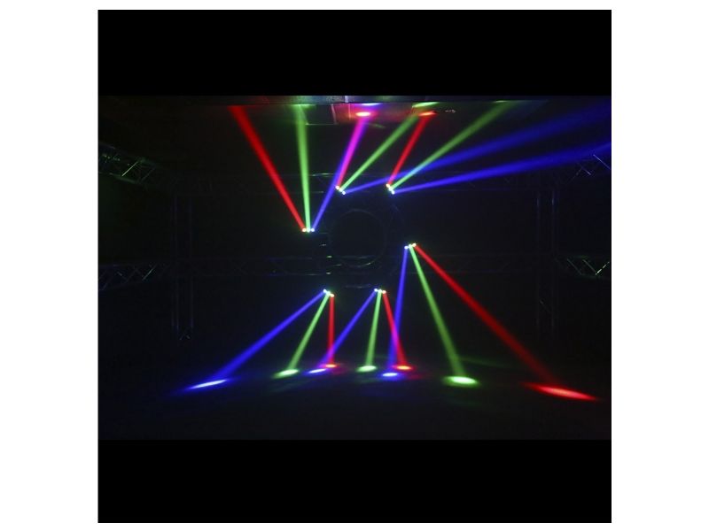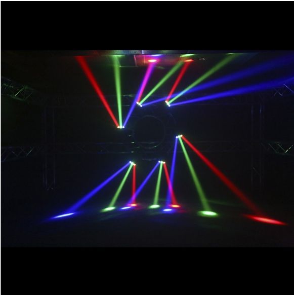 Set of lights multicoloured with beam effect.4 segments digital screen.''Long Life'' LED 50.000 hoursRGBW colours on each LED with mixing possibility.DMX mode 16, 24 or 48 channels.Control of each roll individually360° infinite rotatio...