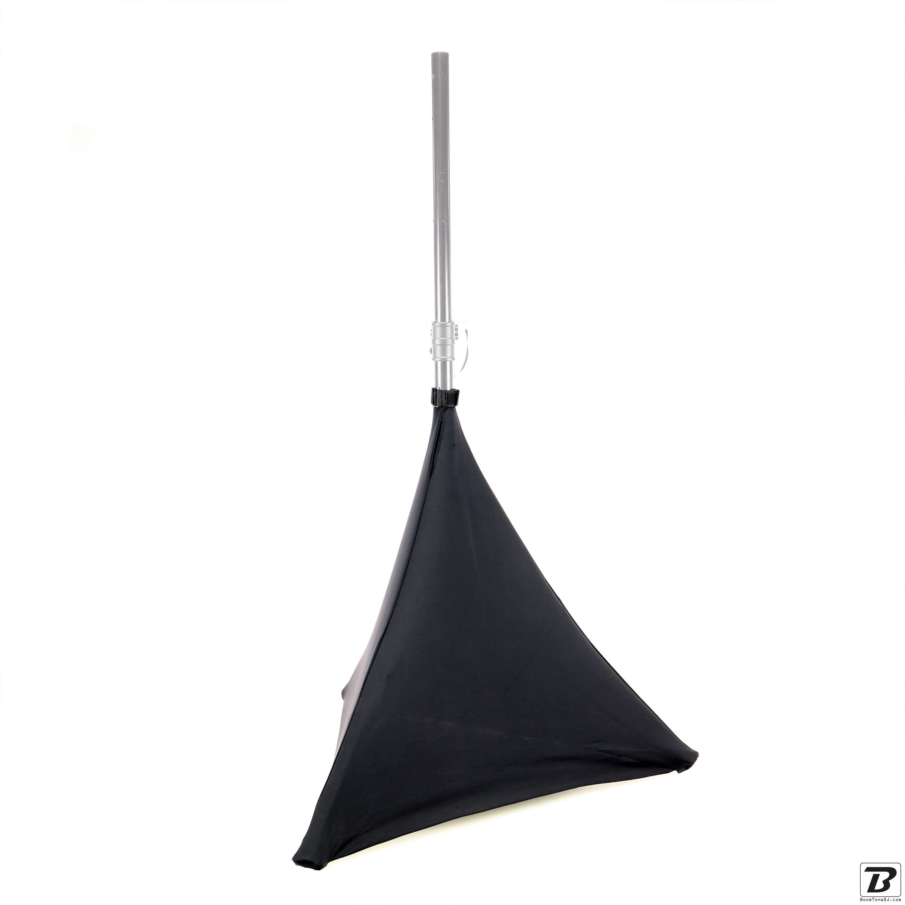 70 cm black Lycra for speaker stand. Features : - Triangular for speaker stand or light support - Height 70 cm - Black color - Flame-retardant Lycra 190 gr/m² - Delivered without speaker stand