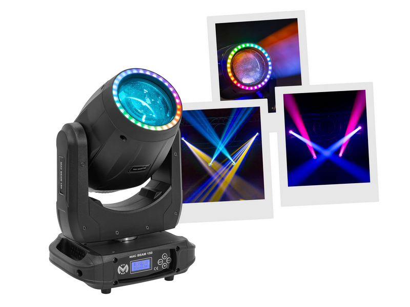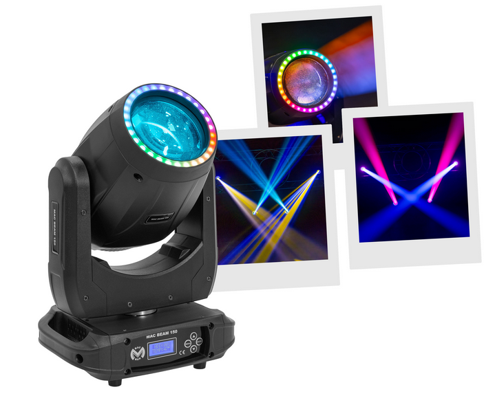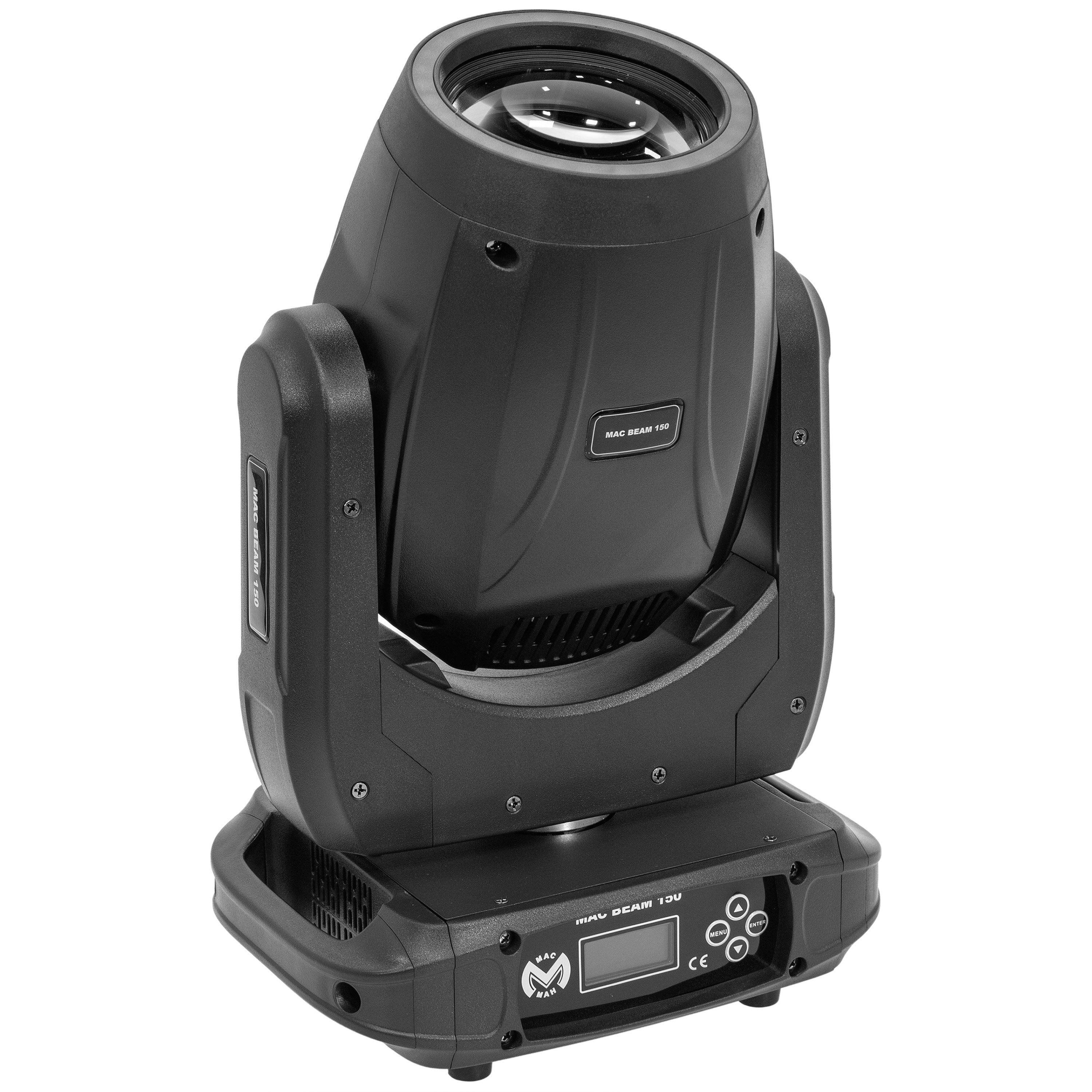 Mac Beam 150 from Mac Mah: 150 W white LED, rotating prism, gobo and colour wheels, advanced DMX control for powerful indoor effects.