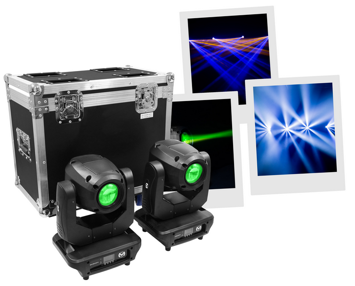Automatic Beam projectors. 1R 120 W lamp supplied, 12 DMX channels, 11 fixed + open gobos.2 Beam headlamps with 1R Mac Mah Mac Beam 1R lampFor use with 120 W short arc lamp type 1RYODN 1R 120 W lamp (5000h) supplied12 DMX channels11 fixed gobos + open12 c...