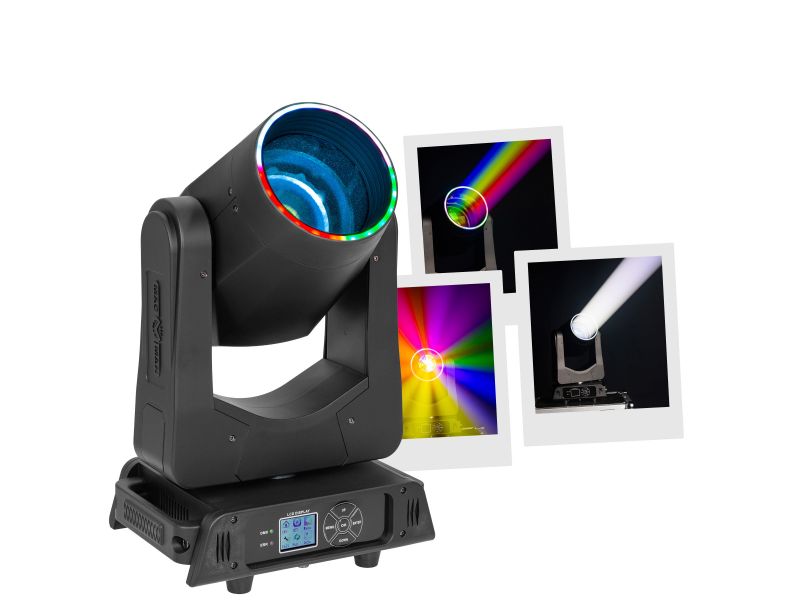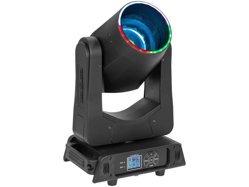 Mac Mah Mac Beam 200 - Compact 200 W beam head, 2.5° beam, gobos, colours, prism, LED halo. DMX/auto/sound control. Perfect for parties and clubs.Mac Mah Mac Beam 200Beam head200 W 9500 K white LED30 x 0.2W SMD LEDs for the halo14 DMX channelsNumerous eff...