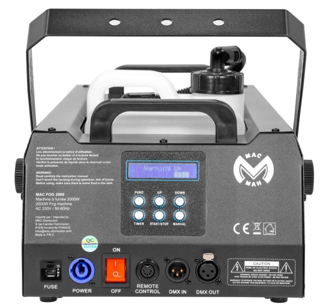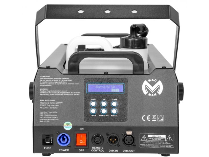 Mac Mah Mac Fog 2000: 2,000 W fog machine for mobile discos, DJs and events. Jets up to 10 m, DMX, wired and wireless remote controls included.
