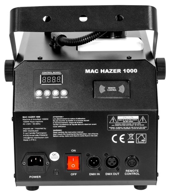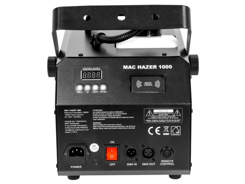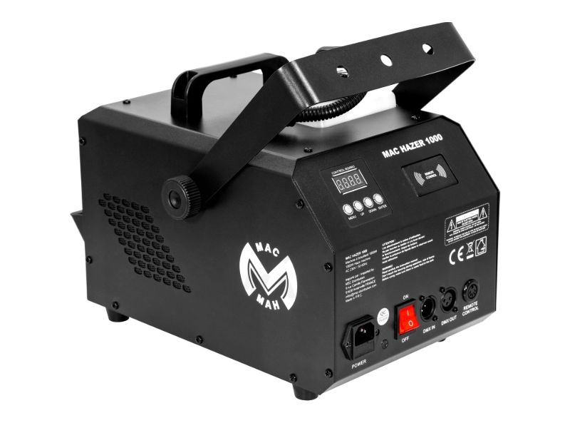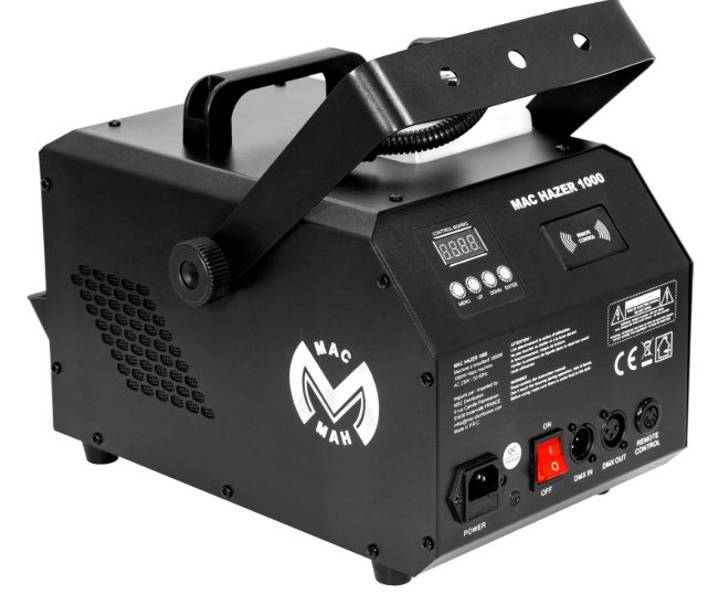 Mac Mah Mac Hazer 1000: continuous fine fog, fast heat-up, 1.2-litre tank, simple or DMX control. Ideal for small contractors who want to enhance their lighting effects effortlessly.