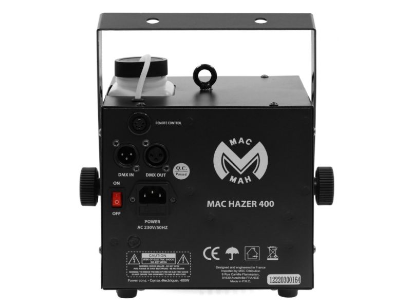 Fog machine ideal for private parties, bars and small events. 400 W power, for use with water-based fog liquid. DMX512 compatible.Fog machine