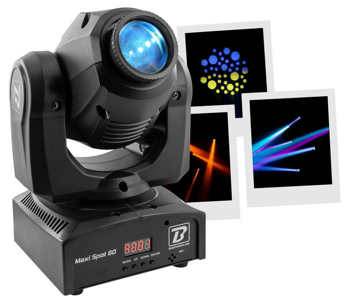 The Maxi Spot 60 is a 60W LED Spot moving head, perfect for DJ performances thanks to its compact size and its automated programs and multitude of effects.