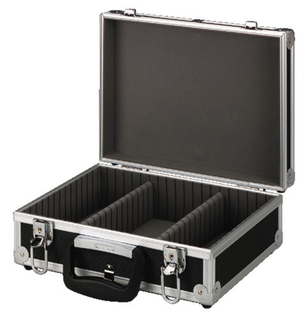 Puzdro na MiniDisc Penové vnútro 3 priečinky pre MD; pre všeobecné použitie, oba oddiely môžu byť usporiadané podľa potreby Hliníkový profilový rám Uzamykateľné, 2 kľúče Robustná rukoväť na prenášanie