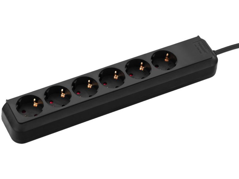 Predlžovačka s viacerými zásuvkami, so 6 zásuvkami. Zásuvky sú otočené o 45° Špecifikácia kábla: H05VV-F3G x 1.5 mm2 1.5 m pripájací kábel s uzemnenou zástrčkou
