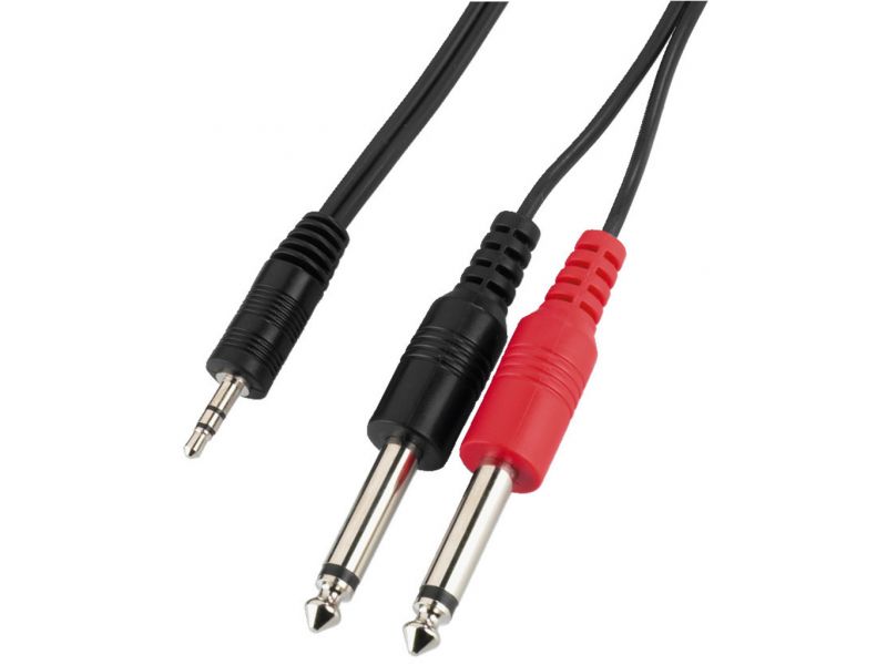 Káblový adaptér Pre zapojenie napr. PC zvukovej karty na mixpult alebo zosilňovač 1 x 3.5 mm stereo plug na 2 x 6.3 mm mono plug Dĺžka: 2 m