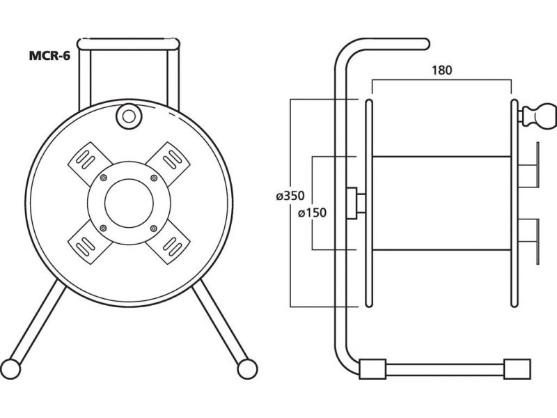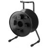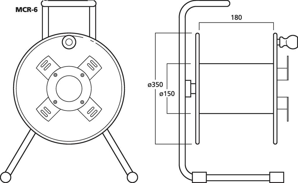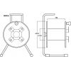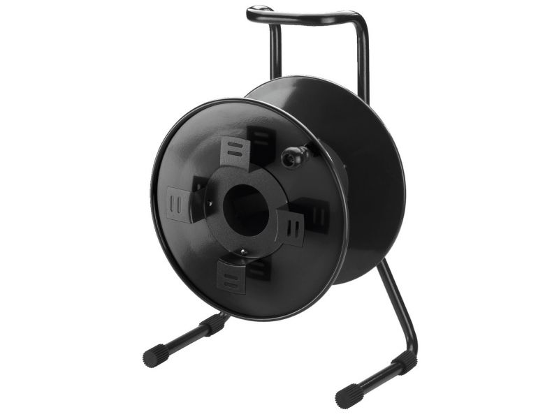 Prázdny kotúč na kábel, pre dĺžku káblov do 100 m. Pevná čierna lakovaná verzia, vhodná pre použitie na pódiu Základňa oceľová rúra Kovový kotúč Ø 350 mm, so zaisťovacou skrutkou Rozmery: 380 x 560 x 310 mm Hmotnosť: 5.58 kg Dodávané bez kábla Uvedená m...