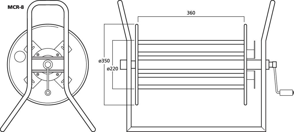 Prázdny kotúč na kábel, pre káble s dĺžkou do 200 m. Pevná čierna lakovaná verzia, vhodná pre použitie na pódiu Základňa oceľová rúra Široký kovový navijak Ø 350 mm, so zaisťovacou skrutkou Rozmery: 580 x 510 x 350 mm Hmotnosť: 6.5 kg Dodávané bez kábla...
