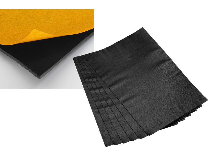 Bitúmenová plsť, 6 plátov (1 m2), cca. 5 kg/m2 Na zníženie zvuku nárazu povrchov, ktoré ľahko vibrujú, napr. steny reproduktorových skriniek a častí karosérie automobilov Vysoko tlmiaca, vysoko flexibilná bitúmenovo-elastomérna zlúčenina Samohasiaca v s...