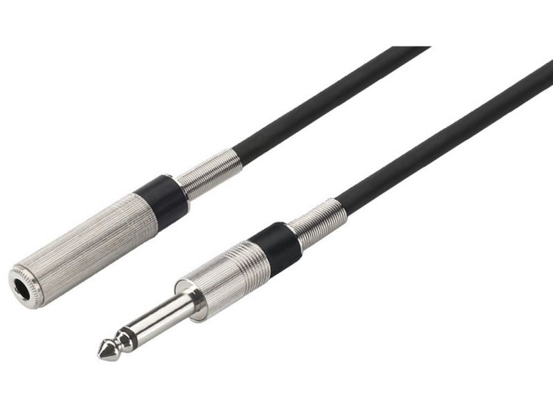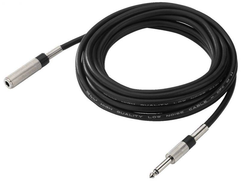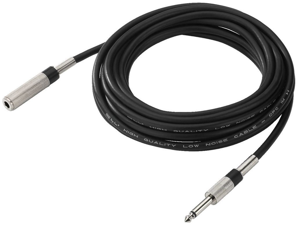 Mono predlžovací kábel Vybavený s 6.3 mm samcom a 6.3 mm inline samicou 1 žila s tienením Nízkošumový materiál, Ø 6.8 mm Dĺžka: 6 m