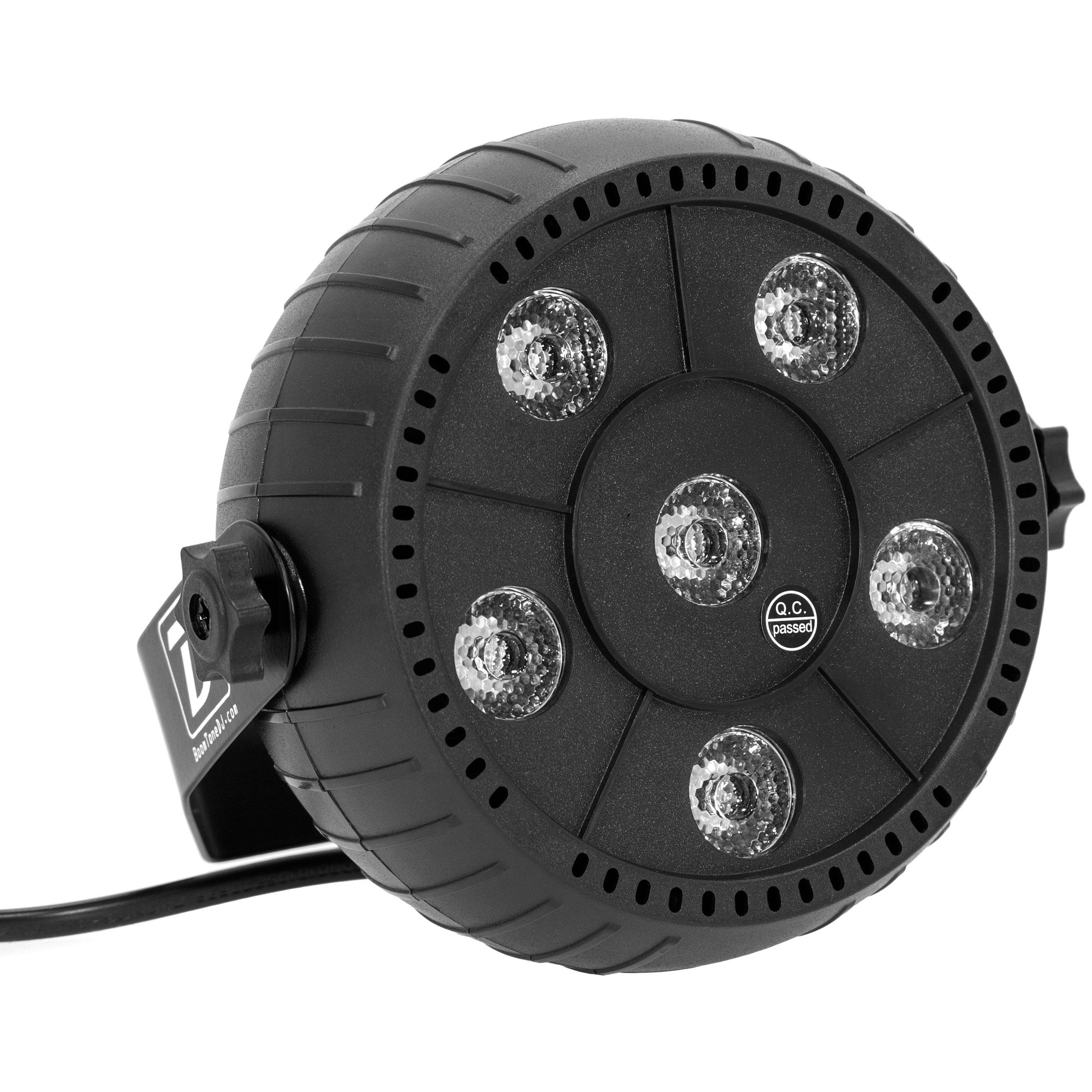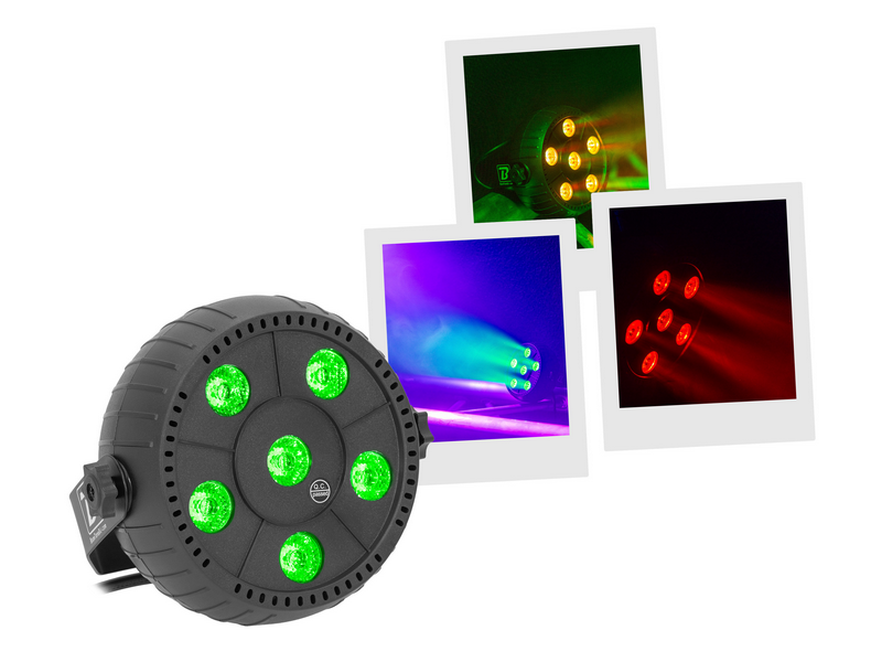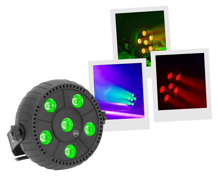 The BoomTone DJ Mega LED 6x3W brings an instant lighting touch to all your parties thanks to its compact size and ease of use. This RGB spotlight concentrates six 3W LEDs that diffuse coloured beams capable of transforming the atmosphere of a lounge, bar or small stage area in just a few moments. Its Plug & Play operation means you can create a visual atmosphere as soon as you switch it on, without any complex settings or prior configuration. The Mega LED offers two essential modes for livening up an event: an automatic mode that seamlessly sequences lighting effects, and a musical mode that synchronises the beams to the rhythm of the music to enhance the energy of the moment. This responsiveness to sound makes it ideal for accompanying a DJ set, energising an evening with friends or adding movement to a club event. Its low weight and low power consumption make it easy to integrate into any installation. The Mega LED can be placed on a stand, a shelf or directly on stage, offering great flexibility of use in restricted environments. Its robust design ensures stable performance, even under repeated use. For those looking for a simple, effective and fun spotlight, the BoomTone DJ Mega LED 6x3W offers a creative lighting solution that adapts naturally to any atmosphere and adds an instant festive touch.