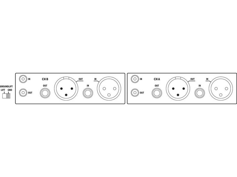 Grafický ekvalizér 2-kanálová verzia, ovládače frekvencie 2 x 15 v krokoch 2/3 oktávy Prepínateľný rozsah ovládania ±6/±12 dB Peak LED Prepínateľný low cut filter Ovládanie Master volume Bypass a ground lift prepínače Ovládače frekvencie s centrálym kli...