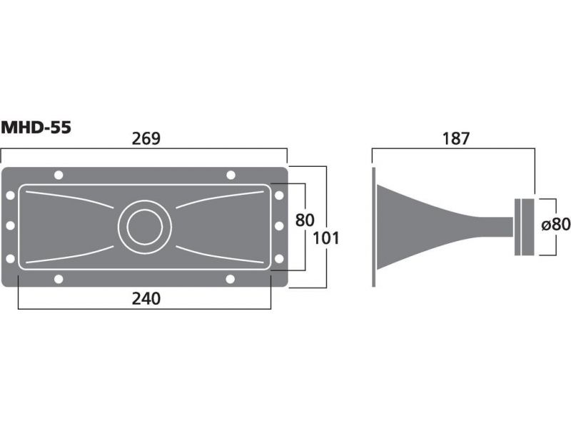 PA horn výškový reproduktor, 30 W, 8 Ω Plastová verzia Dobrá účinnosť Široká šírka pásma, vhodná pre všeobecné aplikácie PA Náhradné hlasové cievky sú dostupné v ponuke (MHD-1255/VC)
