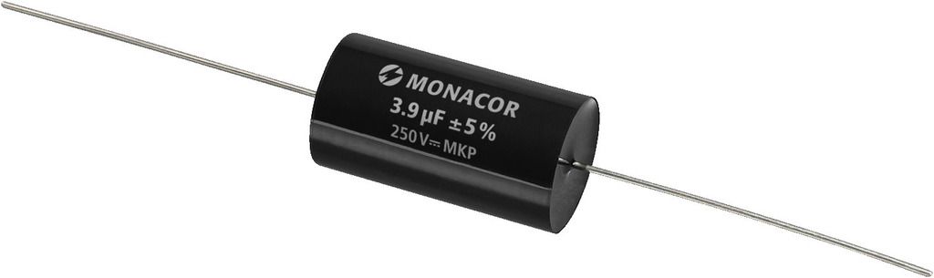 Filmový kondenzátor MKP, 3.9 µF, 250 V Špičkový kondenzátor pre high-end frekvenčné výhybky Polypropylénový film potiahnutý kovom Extra nízky stratový faktor Odolný voči starnutiu Axiálne prevedenie
