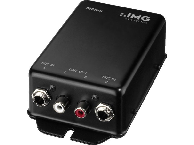 Mikrofónny predzosilňovač, pre pripojenie až 2 mikrofónov na jeden line vstup hi-fi systému, zosilňovača alebo mixpultu. Stereo alebo 2 x mono široký frekvenčný rozsah Čierne kovové púzdro Dodávané s plug-in PSU