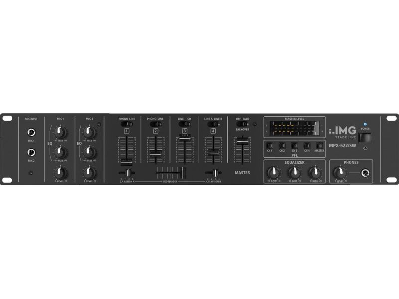 6-kanálový stereo audio mix, zvlášť vhodný pre PA a DJ aplikácie. 2 mono mikrofónne kanály s prepínačom talkover a 2-pásmovým ovládačom zvuku 4 stereo vstupné kanály, prepínateľné phono/line (kanály 1 a 2) alebo line/line (kanály 3 a 4) 1 stereo master...
