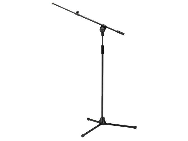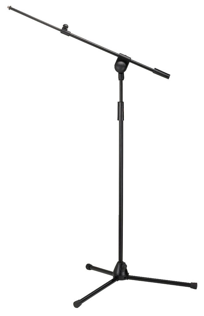 Stojan pre mikrofón, s pohyblivým ramenom nastaviteľnej dĺžky a skladacími nohami tlmiacimi nárazy. Závit: 16 mm (⅝") a 9 mm (⅜"). Matný čierny lak Nastaviteľná dĺžka ramena: 56-95 cm Nastaviteľná výška: 106-242 cm Rozmery skladovania: 10 x 98 cm Hmotno...