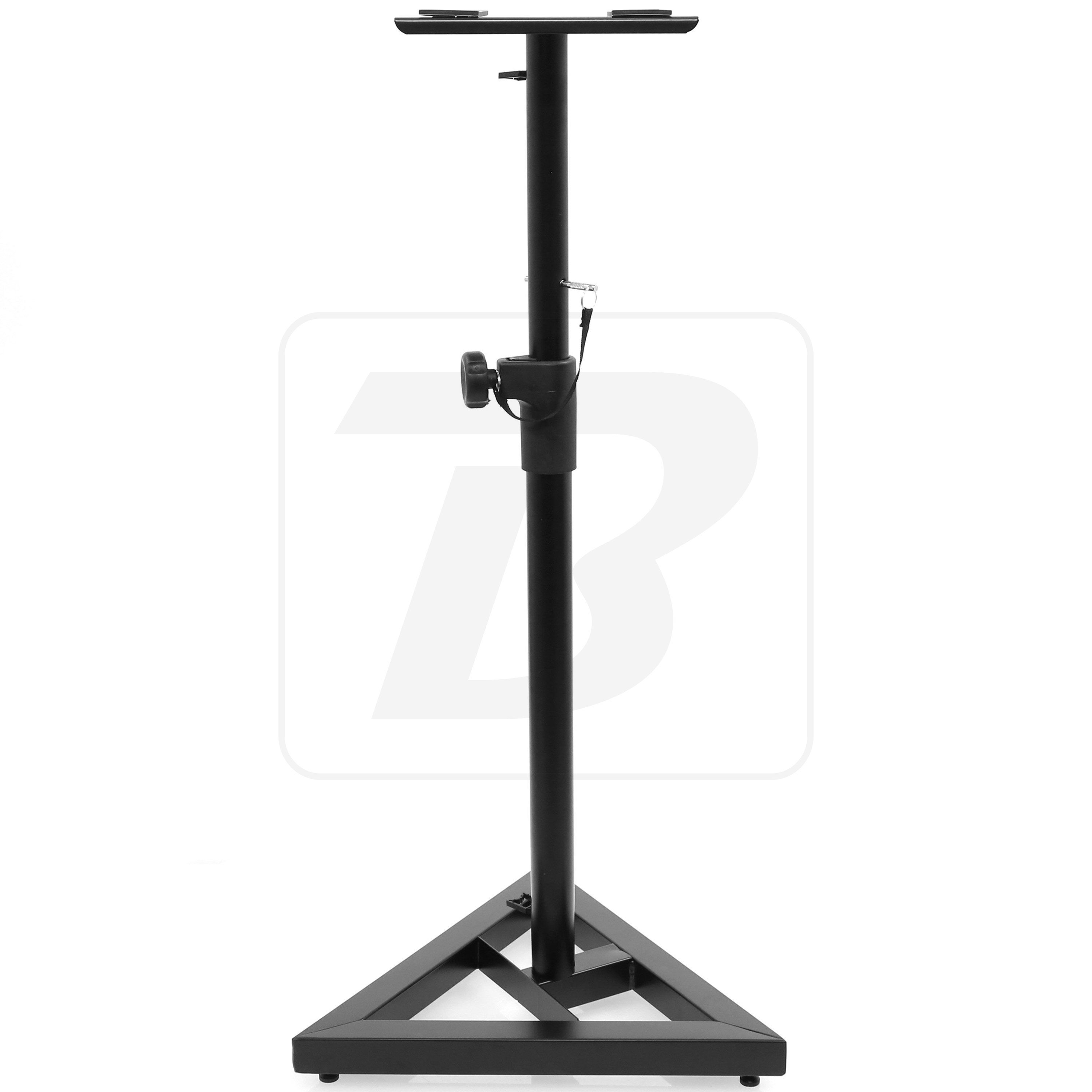 BoomToneDJ MS2 Speaker Stand Perfect for monitoring, Hi-fi or home cinema Solid metal tubes with heavy base Adjustable height from 69#120 cm. Triangular base Safety pin Black Finish