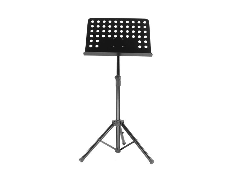 BoomToneDJ MUS#2 Very stable music stand, suitable for heavy partitions Very easy to assemble Folding tripod base and perforated metal tray Height adjustable from 65 to 120 cm